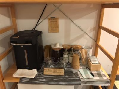 共有スペースの窓際にはカウンター席が並び、コンセントもあるので便利です。無料のコーヒーもあるので、飲みながらそこでパソコン作業に集中できました。- 旅行時期