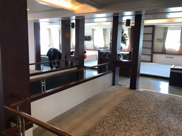 事前の下調べでは、2等席は混むとの情報だったので、1等席と悩みながらも費用をおさえたいため、最終的に2等席を選択。結果、時期が良かったのか全く問題なかったです(乗船日は7/9) 念のため、行きも帰りも出港時間の1時間前にはフェリー乗り場にいるようにして、ほぼ先頭で乗船し、窓際の席を確保できました。船内ですが、小さな売店や、優先席(バリアフリー)もあり、なかなか快適な作りです。私はイス席を使っていましたが、カーペットのオープンスペースも、混んでいないタイミングなら、ゴロ寝できそうで良かったです。