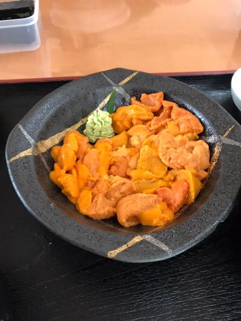 フェリーが到着し、レンタカーを借りて最初に向かった場所です。午前中(10:30過ぎぐらい)に行ったのですが、私たちの他に観光客はおらず、スタッフの方に案内してもらい、すぐにウニむき体験へ。お手本を見せてもらい、素手でウニを持つのですが、手のひらに感じるウニの針の動きがなんとも、くすぐったいやら、怖いやら、痛そうやら(全然痛くなかった)で大興奮してしまいました。剥いた後は試食できるのですが、新鮮なウニの味が最高でした。またスタッフの方のウニの説明(性別で味が違うなど)もとても興味深かったです。午後からは団体のお客様が来るとのことでしたので、行くなら午前中の早い時間がいいかもしれません。実際、午後に車で前を通ったら、観光バスなど止まっていて、混雑している様子でした。