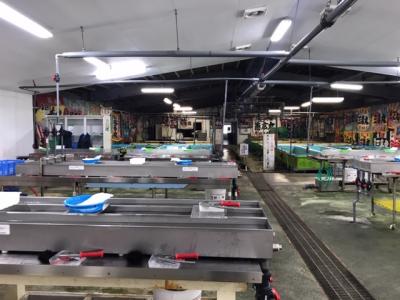 その時点で、お店の方からは、今ならまだ入れます、との案内で、店内に入るとほぼ予約の団体のお客さん用に、テーブルの上に舟盛り料理が準備されていました。