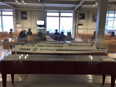 時期(乗船日7/11)、時間帯(19:30発)によるのかもしれませんが、ターミナル内はそれほど混雑しておらず、乗船開始までの間、待合室でゆったり過ごしたり、小さな売店があったので、買い忘れたお土産、乗船後にいただく北海道限定ビールも買い込んだりしました(船内の売店でも全く同じ値段で売っていたのを後に発見、、、)