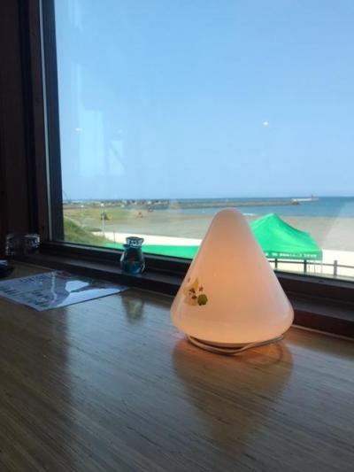 11時前に着いてしまったので、目の前の浜辺を少し散歩してから、ほぼ開店と同時に店内へ。海鮮丼屋さんというよりも喫茶店という感じのお洒落な店内。大きな窓ガラスで海が眺められる窓際の席に通してもらいました。