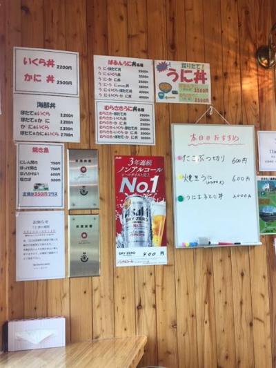 こちらでいただいたのは「ウニ丼セット」、丼とウニは別々のお皿に盛り付けられて出てきます。礼文島でとれたバフンウニは口に入れると甘みが広がり、みょうばんなど使っていないので苦味もなく、いつまでも甘みが続きます。そのまま食べるのもよし、海苔をちぎってウニと一緒にご飯の上にのせて食べるのもよし。至福の時を味わえます(笑)- 旅行時期