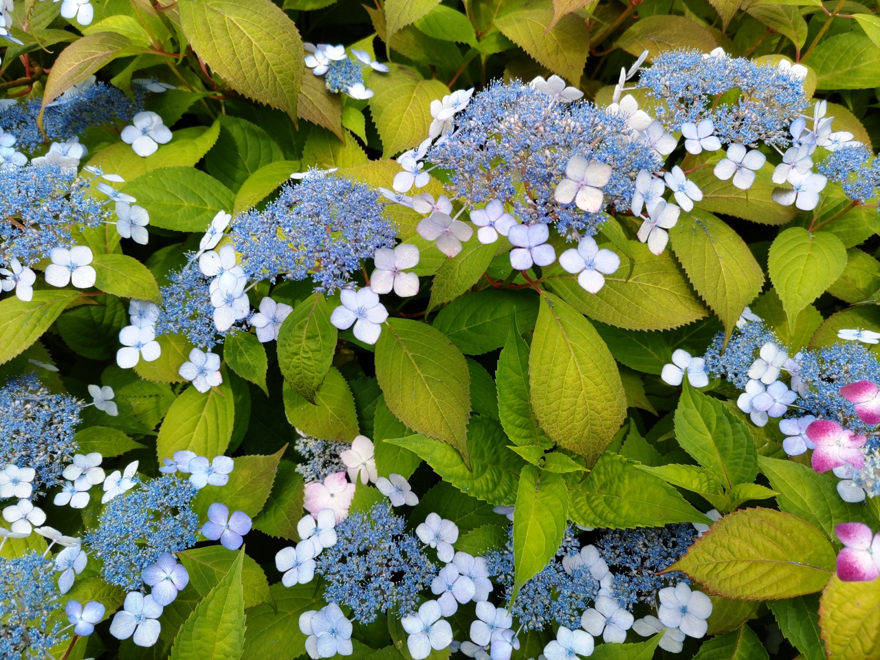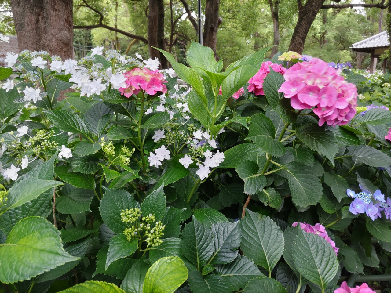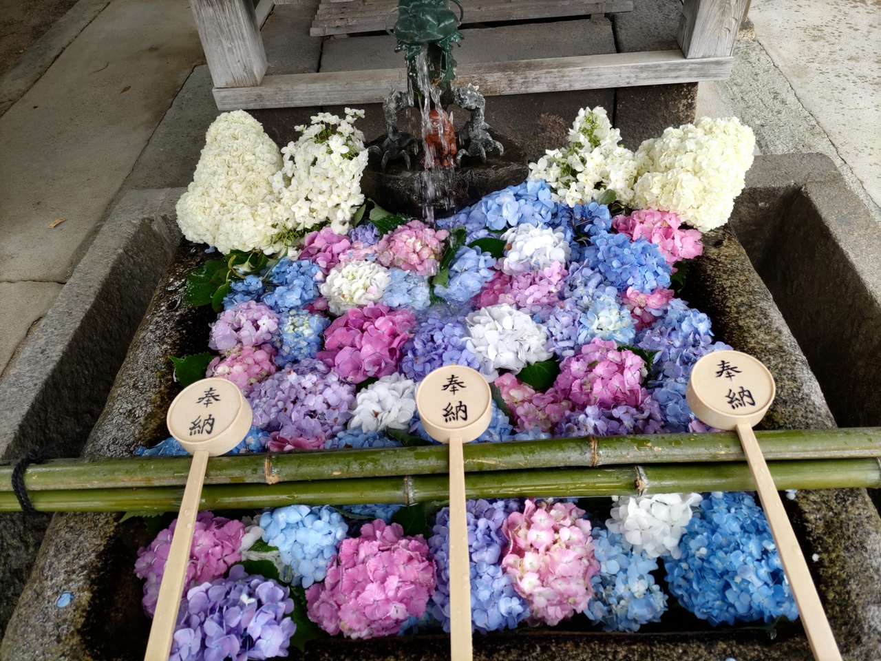 建仁寺の中にある塔頭寺院、霊源院は一休さんや今川義元が修行をしたところです。織田信長の直筆書状が展示してありましたが、撮影はNGです。お庭は枯山水庭園で「鶴鳴九皐(かくめいきゅうこう)」と名付けられています。鶴は深い谷底で鳴いてもその声は天に届く。つまり、賢人は身を隠してもその名声は広く世間に知れ渡るというたとえで、聖者(釈迦)の教えは世界に広まるという意味なのだそうです。お庭と天井の龍図は撮影可能です。お庭には下りて写真が撮れます。お寺の方がいろいろと説明してくださる中で、お庭に咲いている花はガクアジサイだと思っていたのですが、アマチャだと言われ驚きました。調べてみると仲間ですが、アマチャの葉は細長く「甘茶」として飲用可能ですが、アジサイの葉は丸みを帯びていて毒があるのだそうです。間違えたら大変です。天井の龍図は皆さんが寝転がって写真を撮っていました。