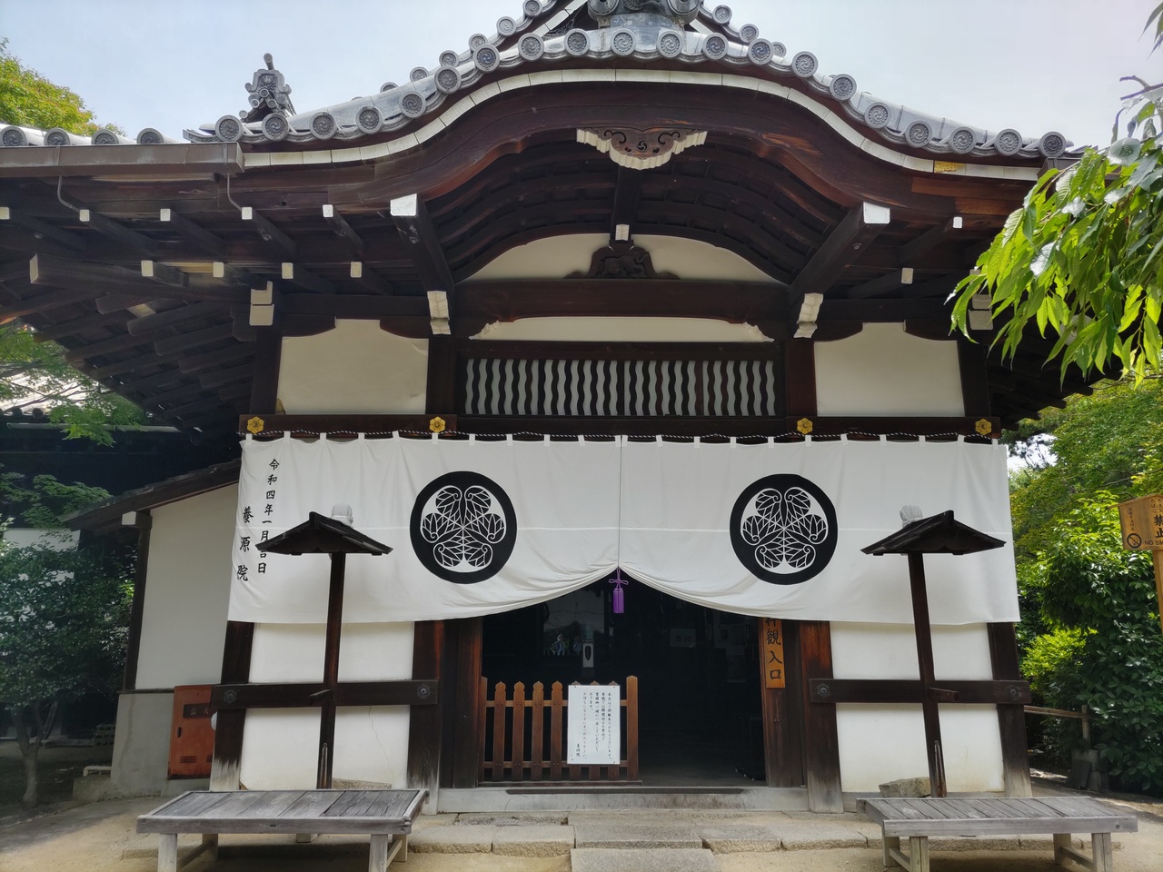 三十三間堂の東側にあります。元々は豊臣秀吉側室の淀殿が父、浅井長政の21回忌に追善供養のために建てたもので、養源院は長政の戒名です。その後火災にあい、淀の妹で徳川秀忠の正室お江が伏見城の遺構を用いて再建しました。廊下の天井は落城の際自刃した鳥居元忠ら800人の血のりの染みた板を天井に使ったため「血天井」と言われています。その後、後水尾天皇の女御となったお江の末娘、和子が両親や兄、家光の位牌を安置し、以後、徳川将軍の位牌所となりました。それで、養源院は、浅井家、豊臣家、徳川家、天皇家とゆかりのある寺だと説明を受けました。中は撮影禁止です。鳥居元忠らの英霊を慰めるために描かれた俵屋宗達の杉戸絵、襖絵があります。白象、唐獅子、麒麟などが大胆なタッチで描かれています。何人か集まると、連れ立って案内され、丁寧に説明してもらえます。