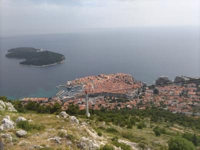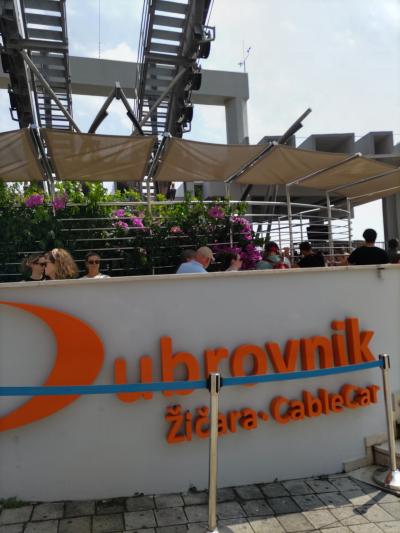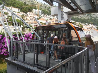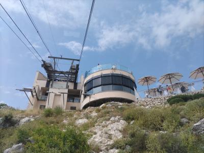 風雨のため午前中はストップしていたケーブルカーですが、午後晴れたので再開されました。「ケーブルカー」とありますが、空中散歩する、日本で言うところのロープウェイです。23年7月、往復料金が27ユーロでした。チケットを買うために長いこと並びました。下で買って上がった人はどんどん乗り込んでいました。4分足らずの時間ですが、スルジ山頂からの眺めは素晴らしいので、是非乗って楽しんでください。
