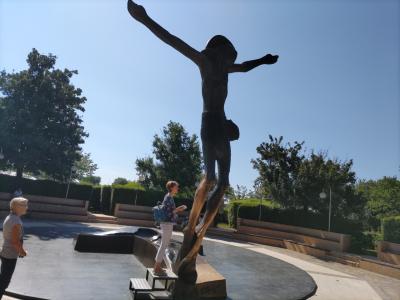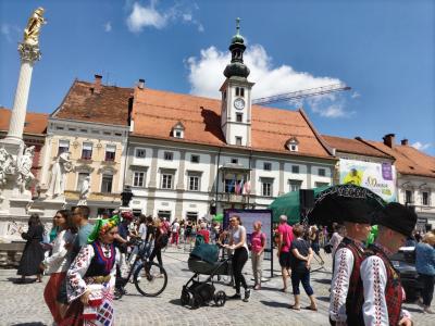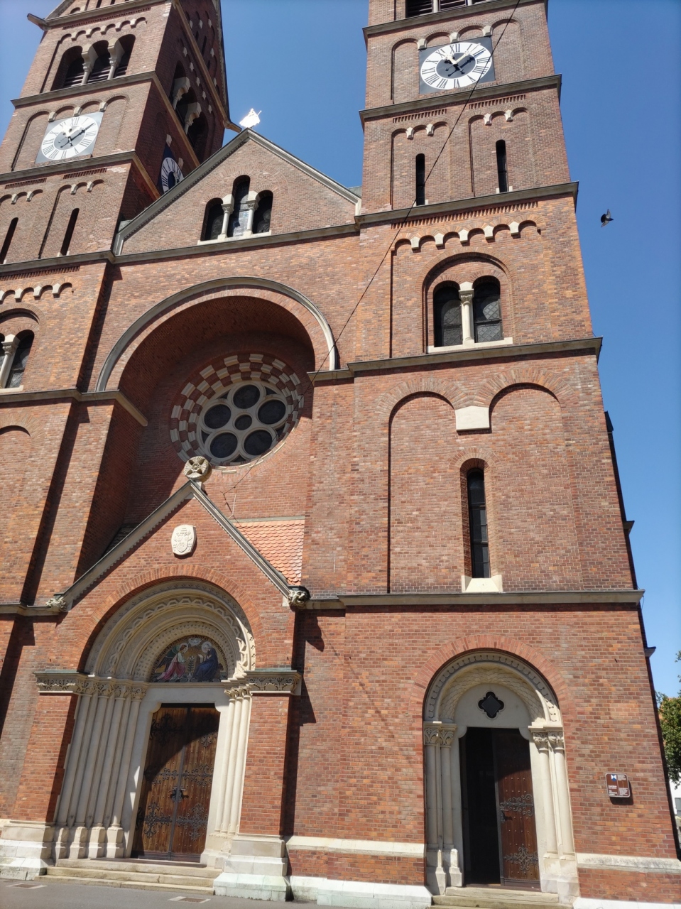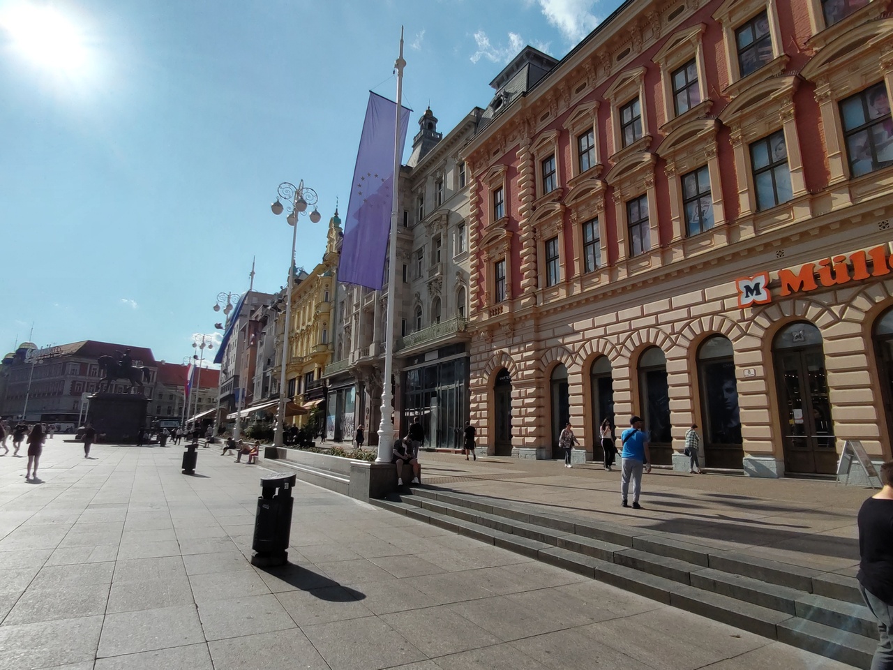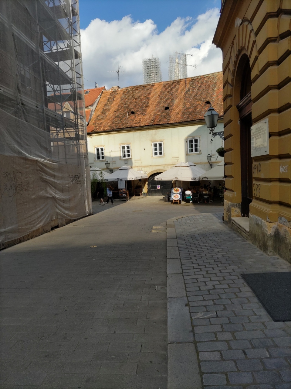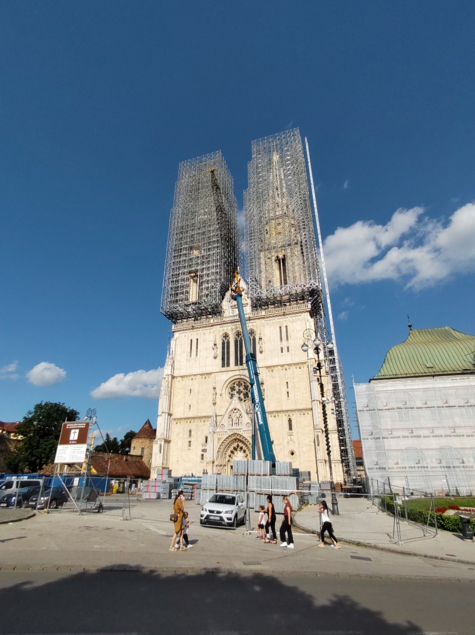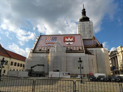 カプトル広場に建つ聖母被昇天大聖堂(ザグレブ大聖堂)は2020年の大地震で損壊し、今は修復中で美しい姿を見ることは叶いません。高さは105mでクロアチアで一番高い建物だそうです。前面には工事用のクレーンや資材が積み重なって置いてあり、中に入ることもできませんでした。修復が済んで内部の見学ができるようになるまでにはまだ、当分かかるそうです。