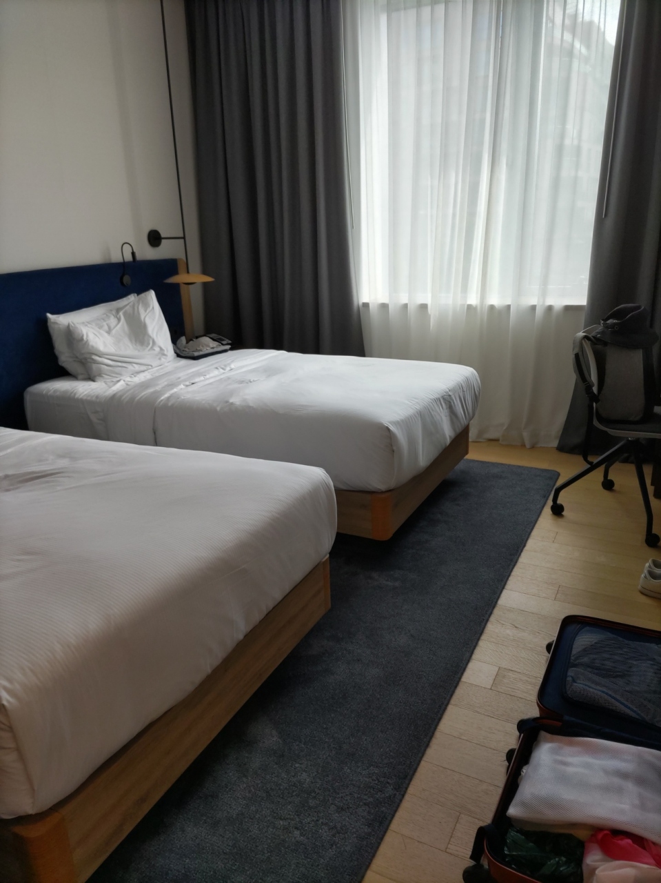 建てられてまだ年数が浅いためか、部屋がきれいです。バスタブはありませんでしたが、バスルームも清潔でシャワーの出もよく、何の問題もありませんでした。私たちはツアーで泊まったので市の中心部からは離れた、大型バスが止められるような郊外にありました。ホテルの前にはスーパーもありました。そこは早くに閉まっていたのですが、10分ぐらい歩いたところに大型のスーパーがありました。朝食の種類は豊富で野菜も多く美味しいと思いました。
