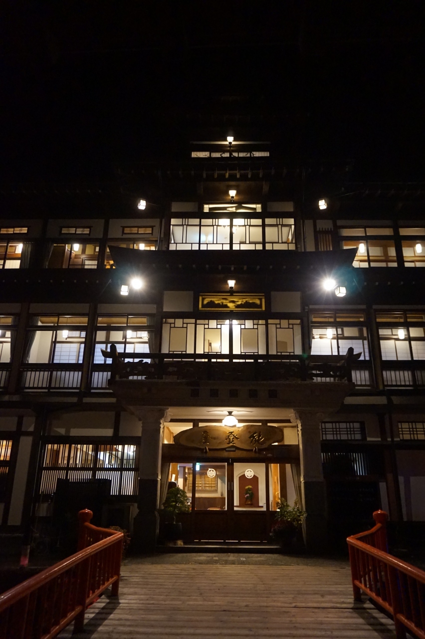 銀山温泉の中でも特に素晴らしい建物で、大変人気のある老舗旅館です。日本秘湯を守る会の会員宿でもあります。宿泊するなら銀山温泉の街並みがよく見える本館ですが、なかなか空きがありません。別館の部屋も清潔で居心地が良いですが、眺望は望めません。お風呂は、現代的な普通の大浴場、長い階段を上っていく展望露天風呂、地下にある開業当初から元湯として使用されていた洞窟風呂の3つがあります。展望露天風呂は貸切で予約が必要です。洞窟風呂も貸切で、こちらは空いていれば入れます。食事は山菜や尾花沢牛など盛りだくさんで、美味しくいただきました。朝食の後はラウンジでコーヒーを頂きながら女将さんとお話ができます。出立時にはお見送りもしていただきました。