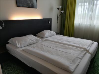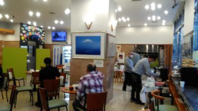 ツアーで泊まったホテルで、街中に歩いてはいけません。電車で一駅、駅からはすぐ近くで歩いて5分です。外観は古めかしいと思いましたが、お部屋は綺麗でした。横に長い建物で、部屋に行くまでに長い廊下をひたすら歩きました。バスタブがあり、スーツケースを開くのも十分な広さがありました。朝食はいろいろな種類があり、美味しくいただきました。近隣はスーパーがありますが、レストラン等は少ないですね。