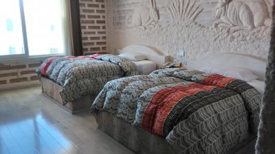ウユニ塩湖の縁に位置するコルチャニ村からも近く、ホテル自体も塩湖の縁に建っています。塩湖にも歩いていけるくらいの距離です。壁、床、ベッド、ソファなどすべてが塩でできています。暖房もありましたが、自分では調節できないのか、部屋は少し寒かったです。しかし、ベッドには電気毛布がセッティングされており、眠るのに支障はありませんでした。シャワーも問題ありません。タオル類は洗濯はされていますが、かなり使い古されたものでした。しかも、入った時には数が足りませんでした。残念だったのは食事です。二日目の朝は、6時の時点でまだ何も用意されていませんでした。Wi-Fiも繋がりにくかったです。