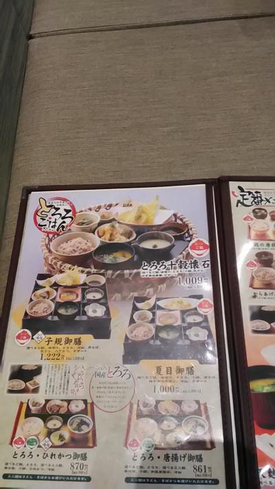 イオンモールの4階にある和食のお店です。ご飯が白ご飯か、十穀米かを選べます。ご飯とお味噌汁は、お代わりができます。夏目御膳1080円を注文しました。唐揚げや鯖味噌煮、とろろに豆腐、ナスの煮物にデザートまで付いて、この値段、お味はGoodだと思います。店員さん達は元気で感じが良かったですね。