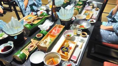 客室やその他施設は中庭を中心に配してあります。古い旅館をリノベーションしたからか、廊下の途中に階段がありますし、お部屋も古い感じがしました。ですが、茶室でお茶をいただいたり、スタッフによる神楽があったりとおもしろいサービスがありました。若いスタッフの方々の接客がとても丁寧で気持ちがいいですね。神楽まで練習しているなんてお見事です。食事は品数が多く、地域の材料がふんだんに使われ、量も私にはちょうどいいです。大浴場は広くきれいで温泉パックなどができるようになっていました。部屋付きの檜露天風呂もいい感じです。部屋にお風呂があるせいか、満室にもかかわらず、大浴場はいつもすいていてゆったりしていました。お風呂上りにはゆずジュース、お茶、アイスなどがいただけます。残念だったのは、Go Toキャンペーンのせいか、小さい子供さんの家族連れが何組かあり、おむつが外れないような赤ちゃんを大浴場に連れてきている方たちがいたことです。全部屋に露天風呂があるのだから、大浴場はご遠慮いただきたかったですね。