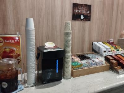 ロビーには沢山のティーパックのドリンクが用意されていて、コーヒーや紅茶、スープなどもありました。