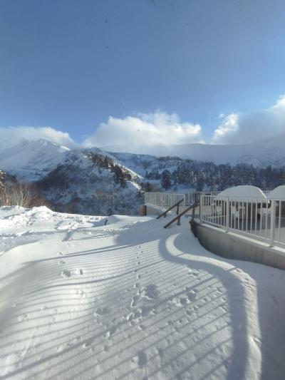 十勝岳が雪化粧され、宿の周りはキツネかウサギか鹿か、動物の足跡が雪に残され大自然に囲まれているなぁと実感。