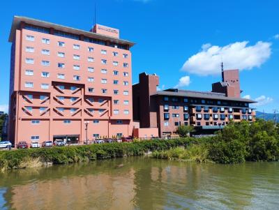 ホテルは湯の川の川沿いにあって、4つくらいの館がありました。部屋からの景色は良いですが建物は結構古い印象です。