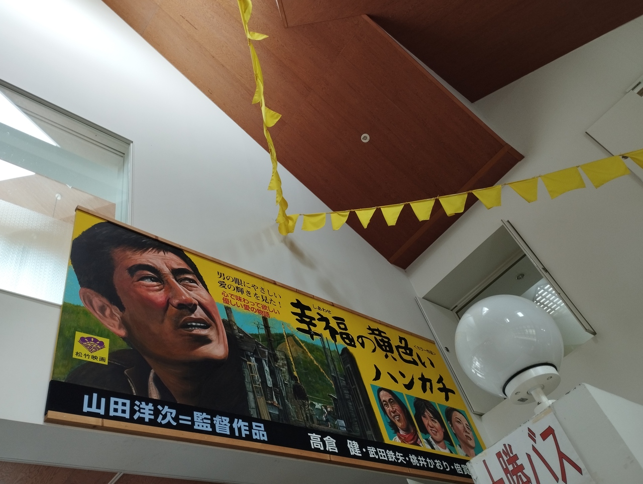駅舎は幸福の黄色いハンカチのロケ地とされていたようで、黄色いハンカチと高倉健さんのポスター?がドンとお出迎えしてくれます。