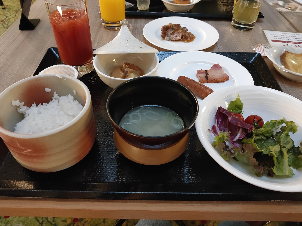 部屋は綺麗です。何せ朝食バイキングの質が素晴らしいですね、中でもデザートが美味しい。コロナ対応で持参したマスク着用に加えて、手袋が用意されていました。外の中庭に案内されました、天気もよく風が心地よく気持ちのいい朝食タイムになりました。