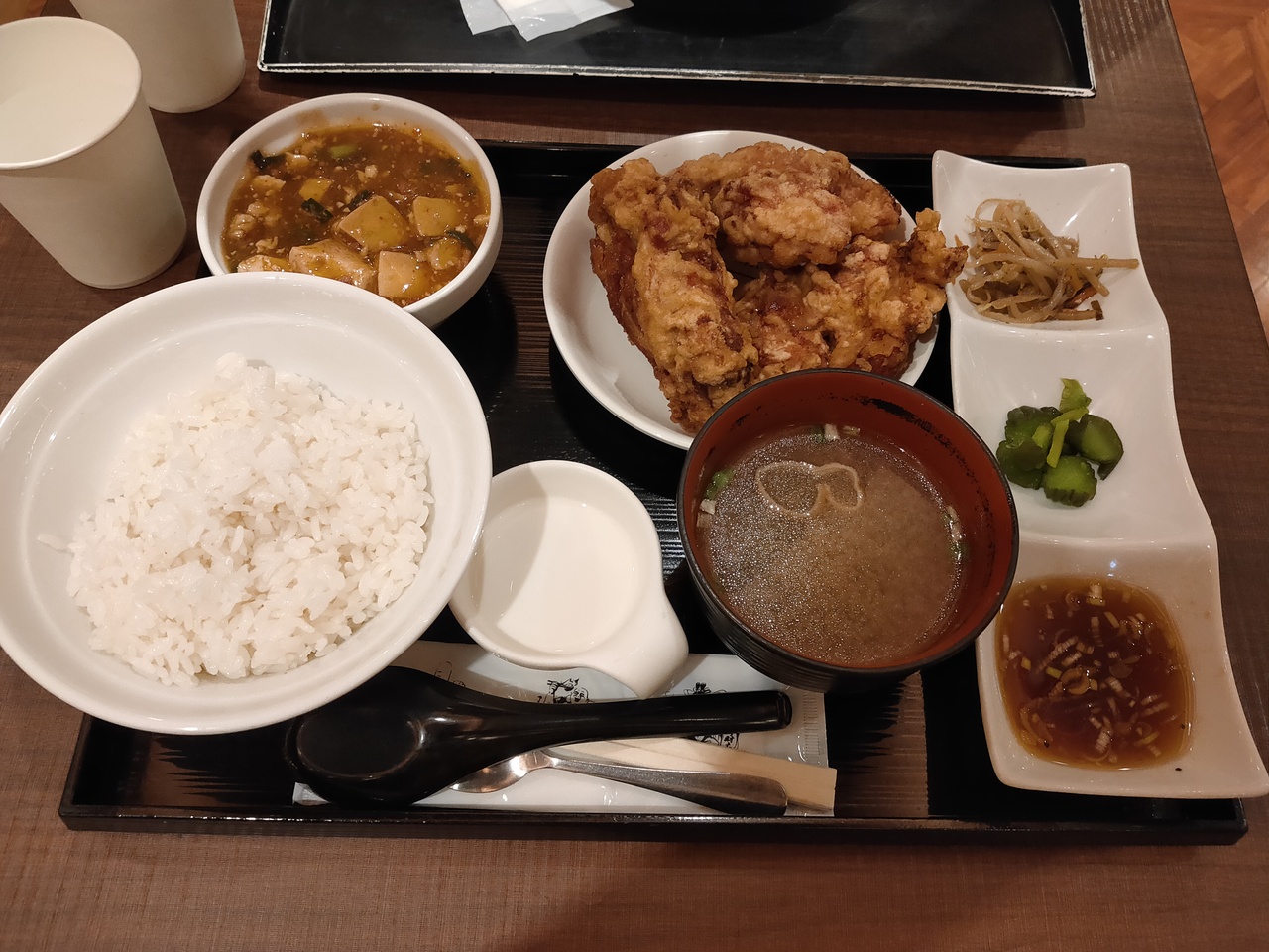 ザンギと麻婆豆腐などついた定食のセットが1000円でしたのでお得です。ザンギも大きくボリュームも満点です。