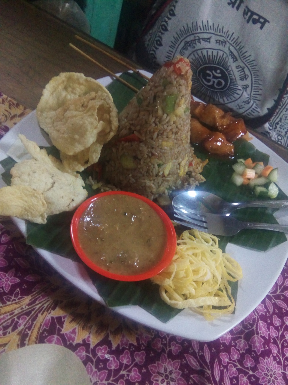 スープのソトアヤムと、カレー味のナシチャンプルを注文。どちらも絶品でした。- 旅行時期