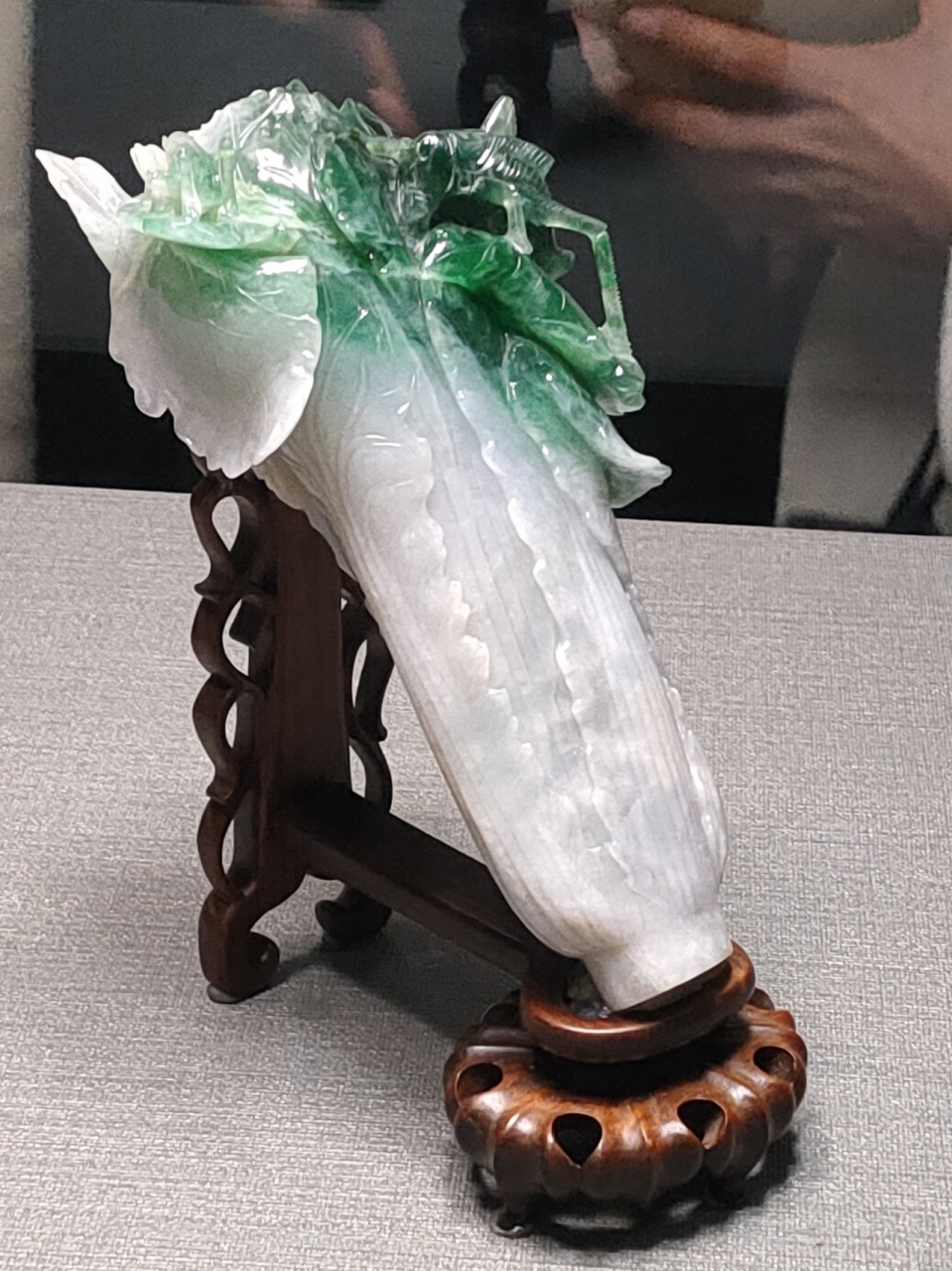 赤いカーペットの階段を上がってまずは3階にある目的の白菜とお肉の展示へ。と思いきや、お肉は台南の博物館に貸し出し中でした、残念です。白菜を見るのにも行列ができていましたが、写真を撮ることが出来ました。