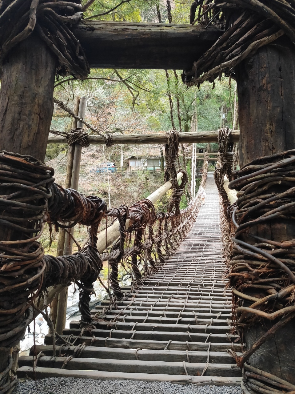 入場料大人550円を払って入場。橋に近づくと…下の川が木の隙間からモロ見えで恐ろしいです。
