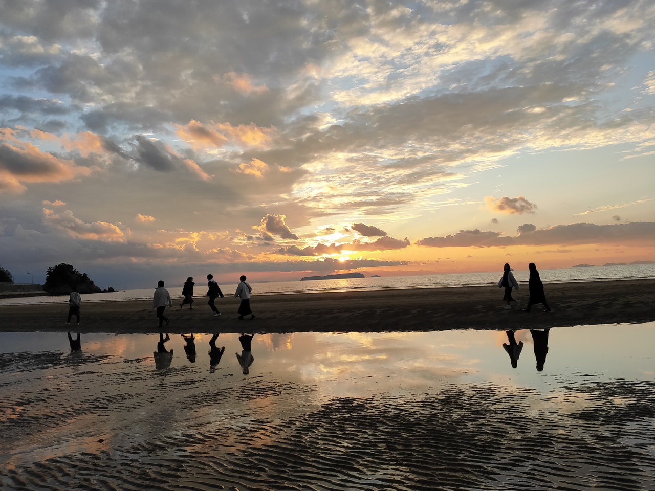 海岸へ行くと既にたくさんの人が。場所を選べば人混みを避け撮影することができます。