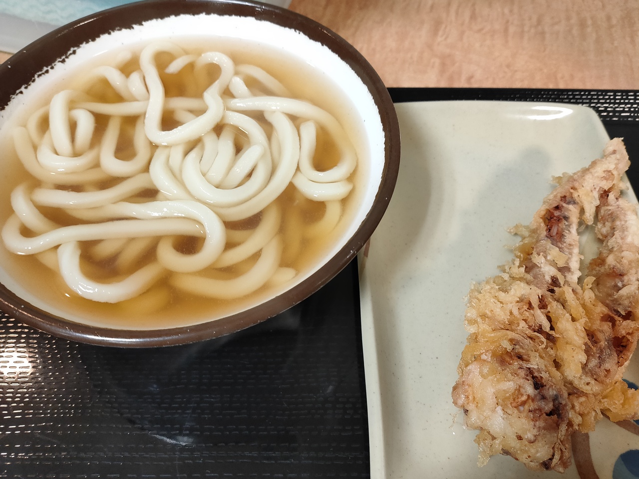 かけ小210円…やすい!!うどんを注文して、イカゲソ天を追加。ヤドンのお揚げもあり気になりましたが我慢。
