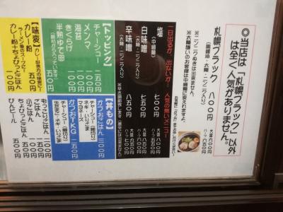 22:00からの開店という、すすきのの場所ならではの営業時間。すすきのの繁華街にあり、店内はカウンター7席のみ、店員もご主人のみです。開店15分後に行くと既に満席、待っている列も出来ていました。席に通されブラックラーメンを注文。さほど待つことなくラーメンが出て来ます。スープは真っ黒ですが、味は見た目ほど濃くはなく、縮れ麺にスープがからみます。魚介出汁の味が濃いのかと想像していましたが、それほどガツンとくるものはなく、自身でトッピングするための数種類のスパイス?がカウンターに並べられていましたので、個々で好みの味付けをして食べるといった感じでしょうか。私の場合は少し期待が上回ってしまった感じがありました。