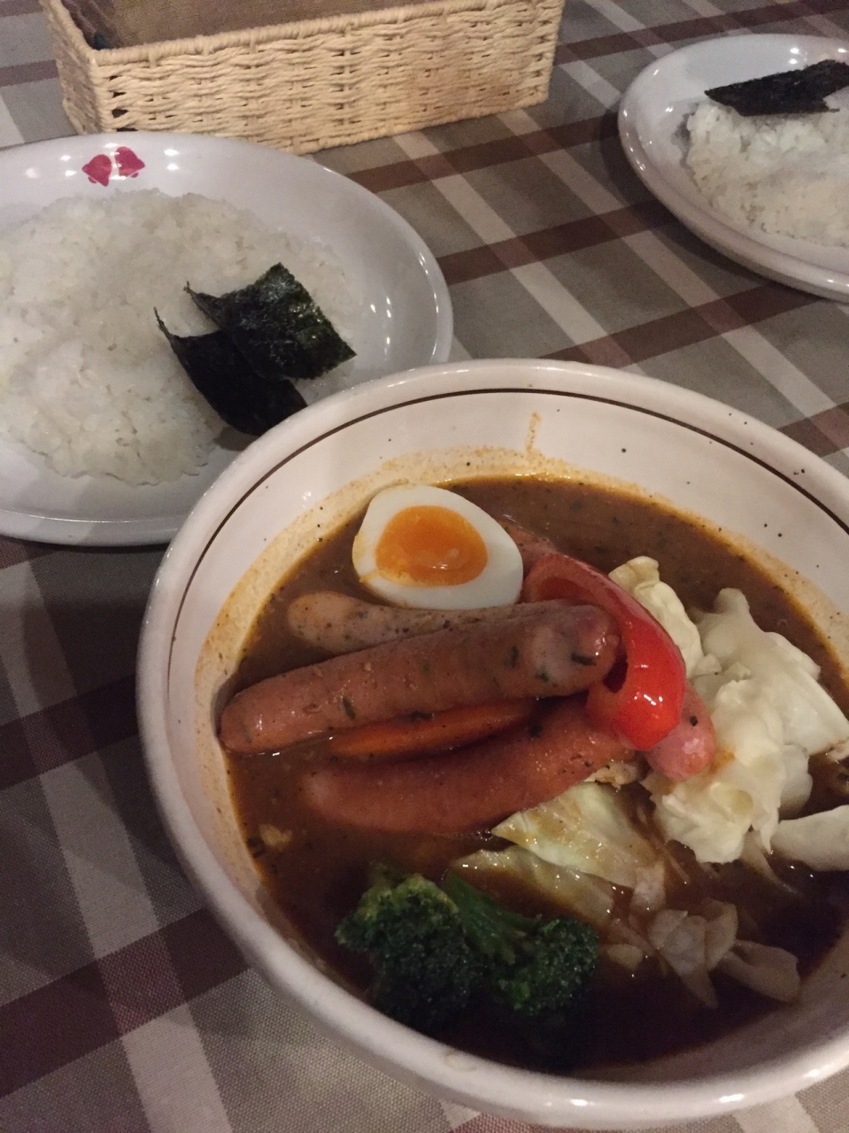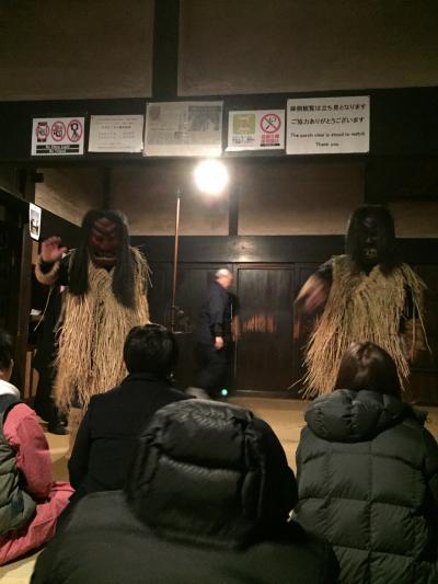 きりたんぽ、地鶏、とてもおいしかったです。途中なまはげが登場し、一緒に記念撮影をしたり、最後はサービスにお味噌汁とお豆をいただくこともできました。