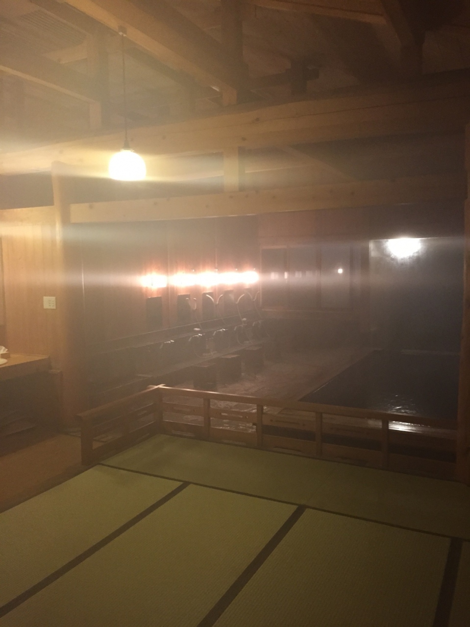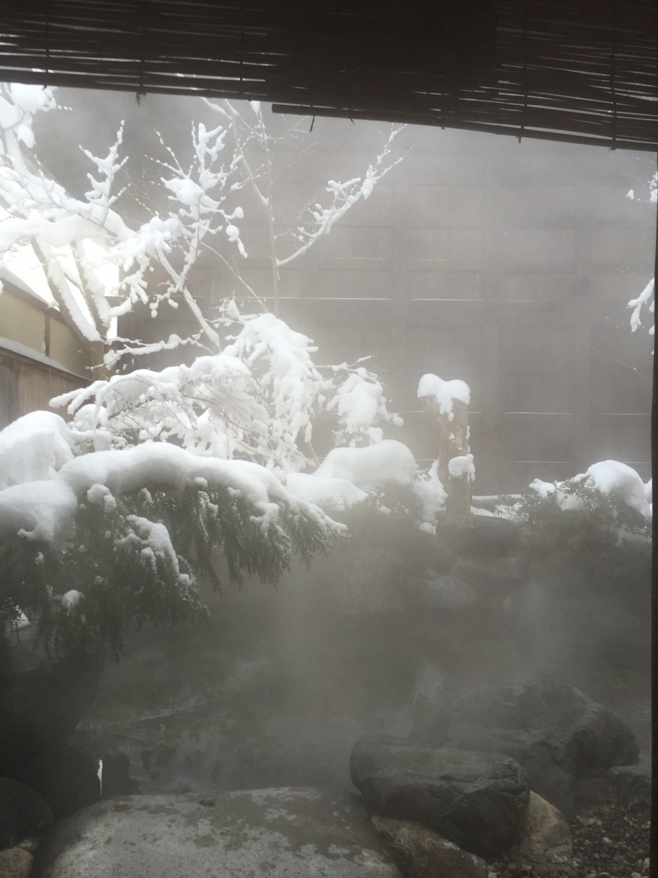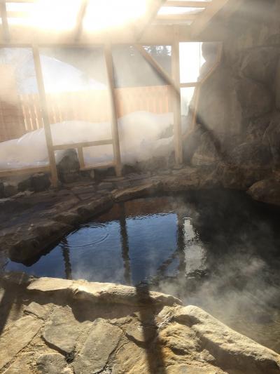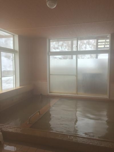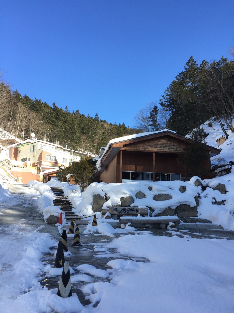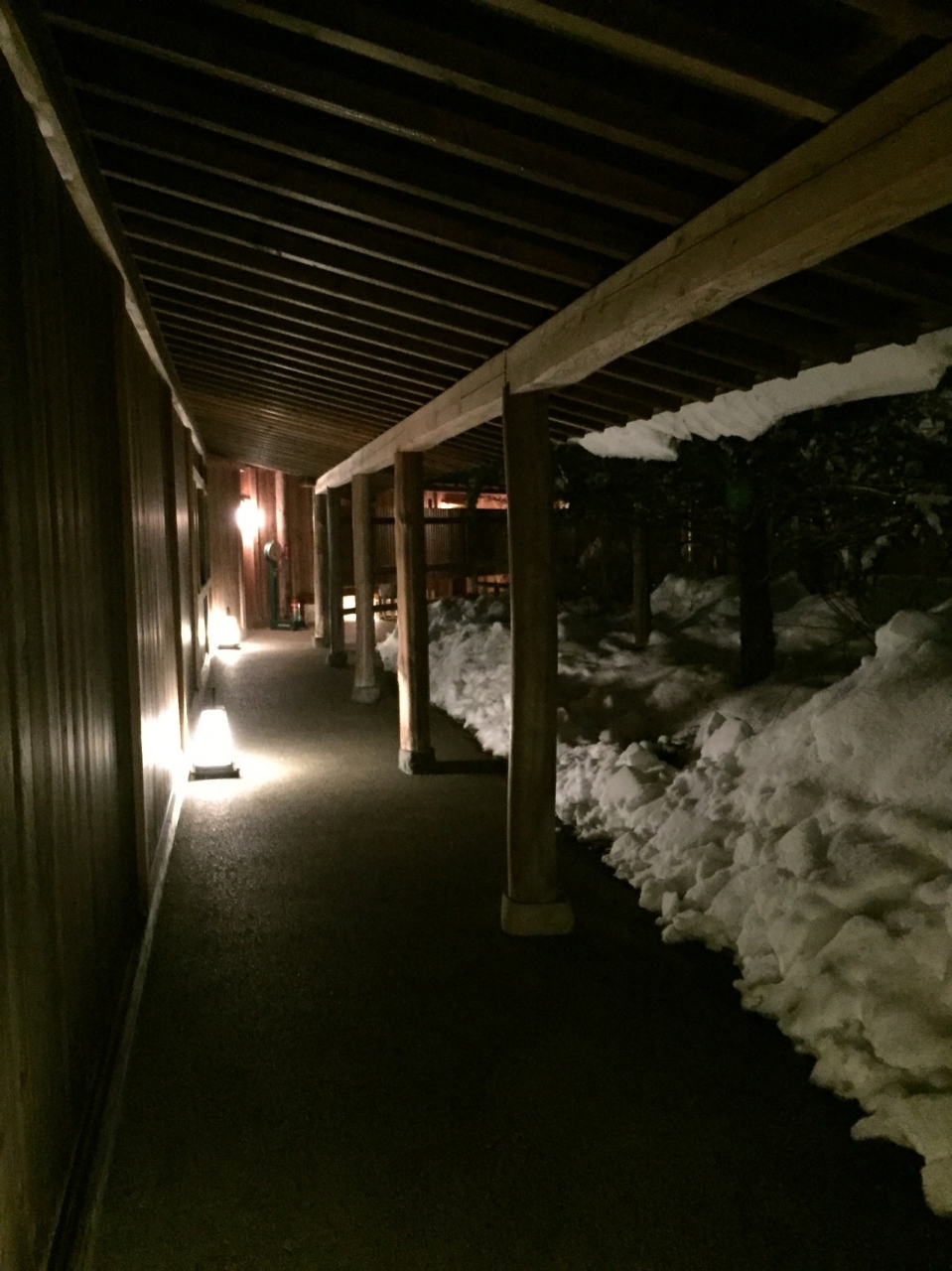 雪景色を見ながら渡り廊下を行った先に温泉があります。冬でしたので寒いけれども、冷えた体をあたためてくれました。