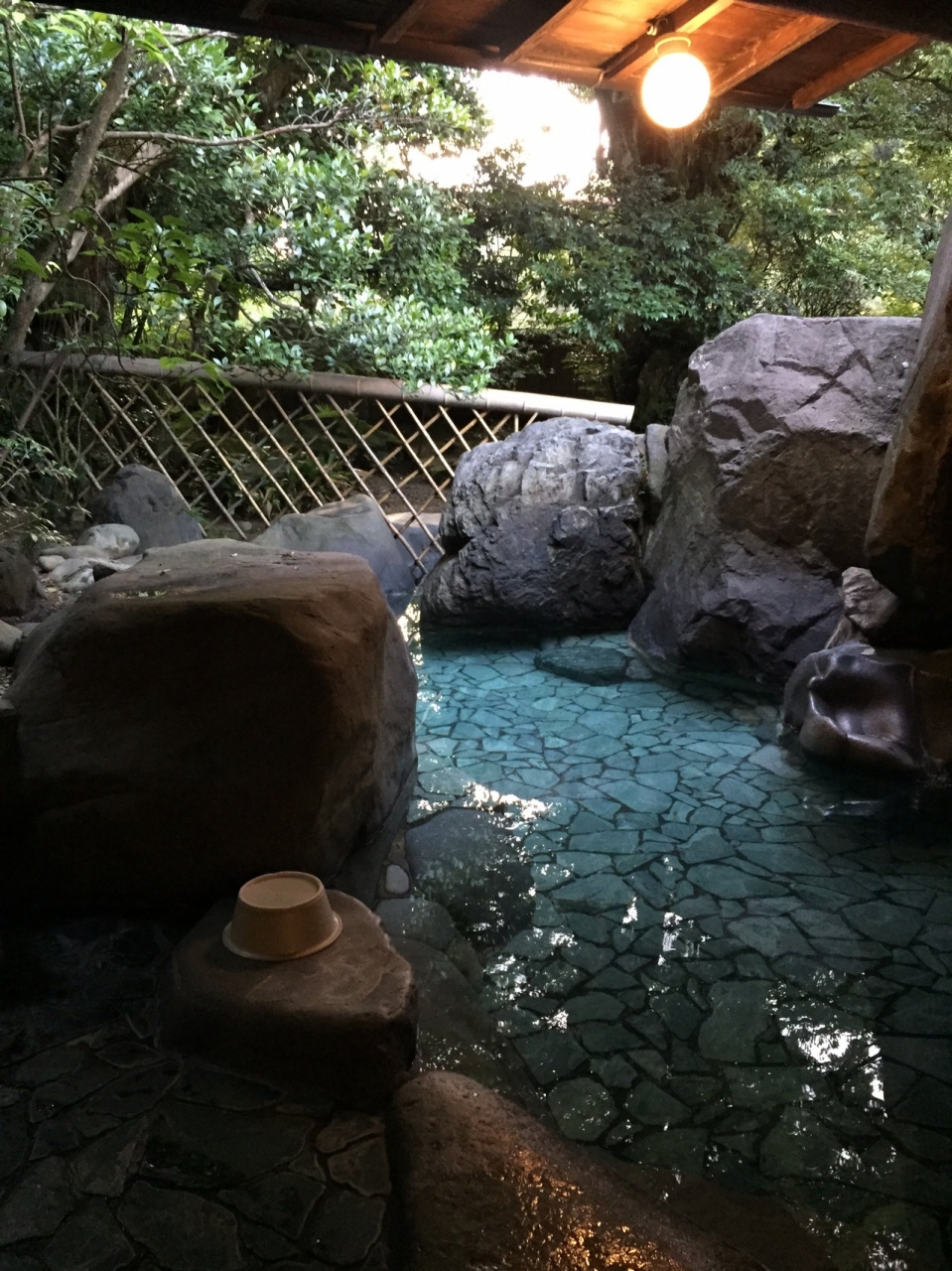露天風呂が2箇所あって、1箇所は内湯と隣接しているのですが、もう1箇所は脱衣所の扉を開けて30メートル先にあります。