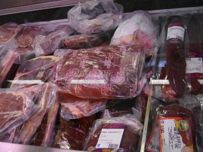 お肉コーナーです。フィンランドは海がある一方で、狩猟の歴史も長く、鹿や...
