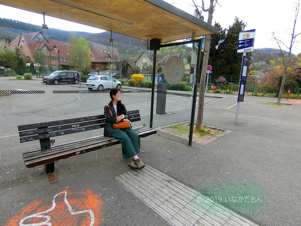 コルマール駅前から145番のバスで約30分で到着しますが比較的大きな集落なのでバス停が何か所もあるのと、145番のバスが停まらないバス停もあるので注意が必要です。
