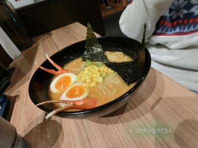 搭乗まで時間があったのと小腹が空いたので空港のラーメン横丁に入りました。ラーメン横丁だけあって様々なラーメン店があり呼び声も飛び交う中、カニに釣られて入店。当然、カニ出汁味噌ラーメンを注文。2本のカニ爪がトッピングされたラーメンは見た目は良かったんですが、自分的にはちょっとショッパ過ぎました。(個人的感想です)