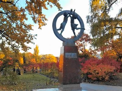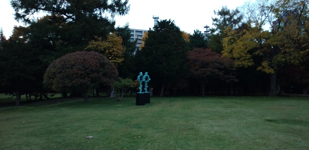 中島公園を南の方向に歩いて行ったときに、菖蒲池の手前の広場に、この像が立っていました。
