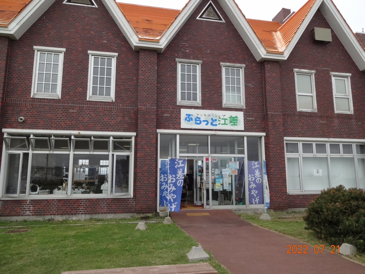 江差・海の駅・開陽丸青少年センターと壁面にかかれた大きな建物の中にあるお土産物屋さんです。