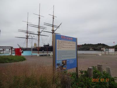 江差海の駅から、かもめ島に向かって歩いている途中に、海岸に立派な船がありました。