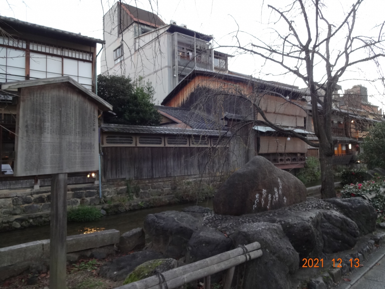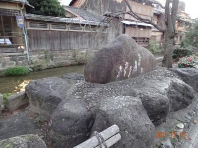 吉井勇という歌人の作品で、「かにかくに 祇園はこひし寝るときも 枕のしたを水のながるる」と書いてあるそうです。