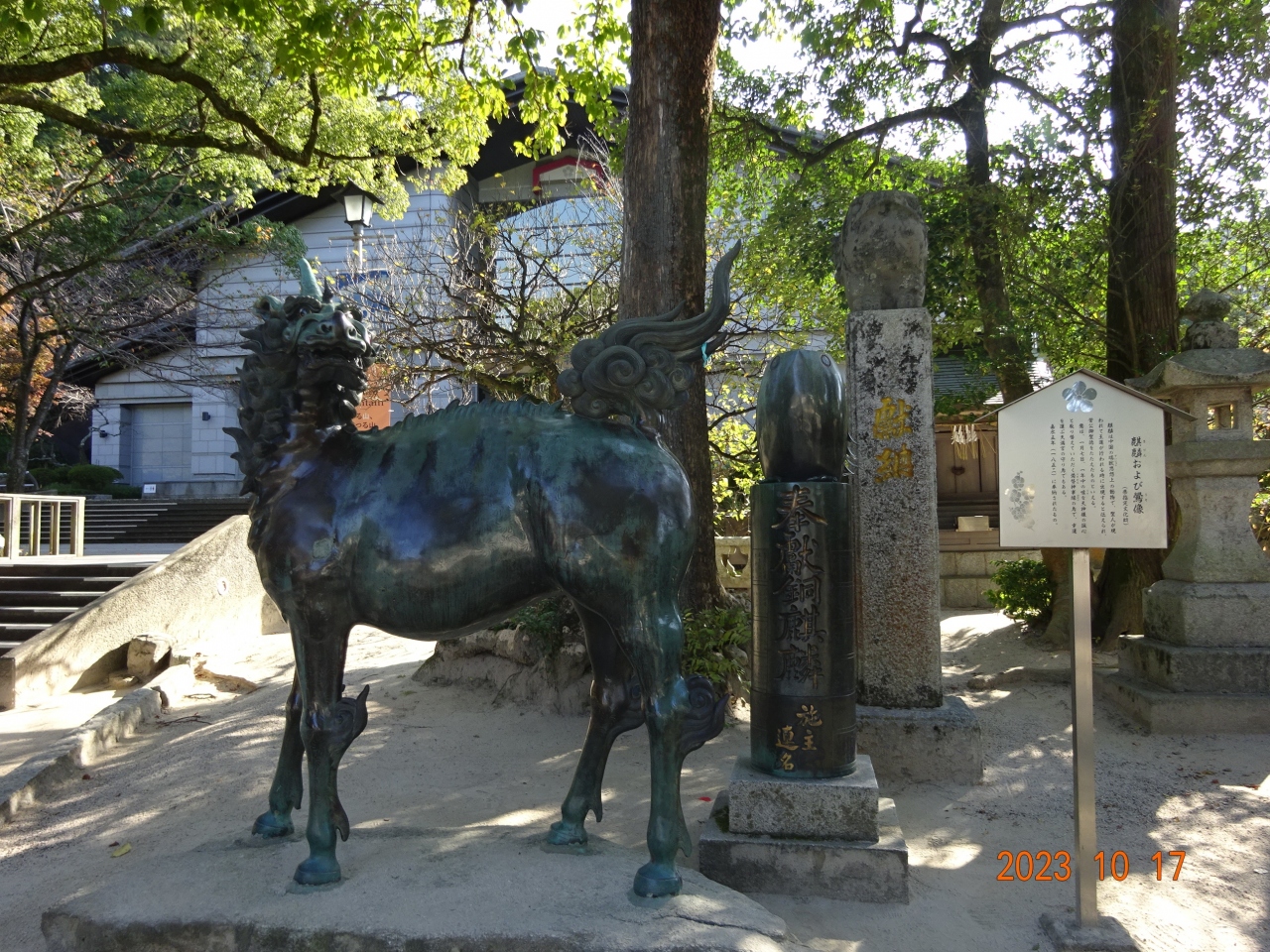 新元号「令和」の起源となった「梅花の宴」が行われた大伴旅人邸跡が、この八幡宮の近くにあったらしい、ということで、最近注目されているそうです。