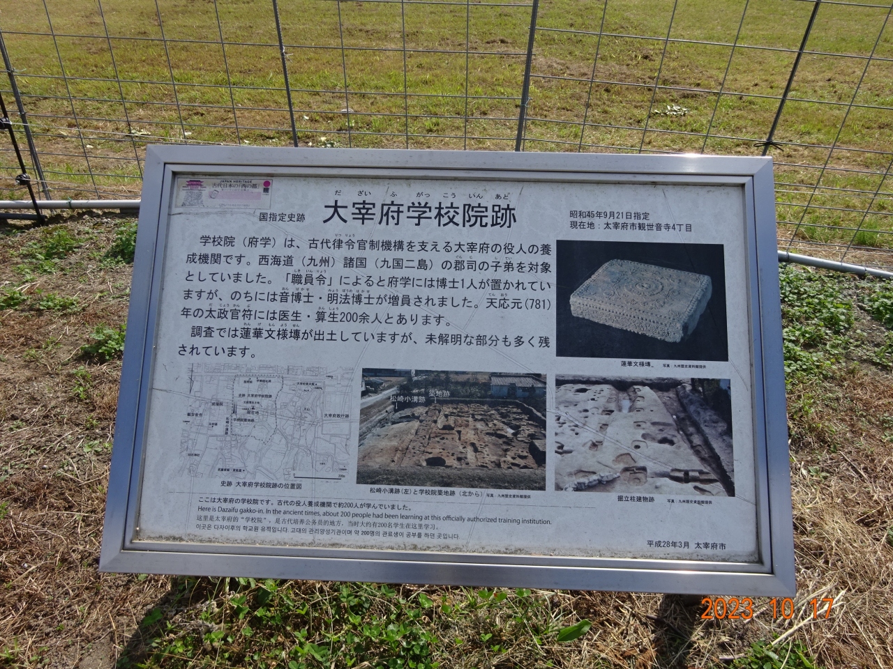 大宰府の官人養成機関に関する遺跡なのだそうです。1970年に、国の史跡にも指定されているそうです。