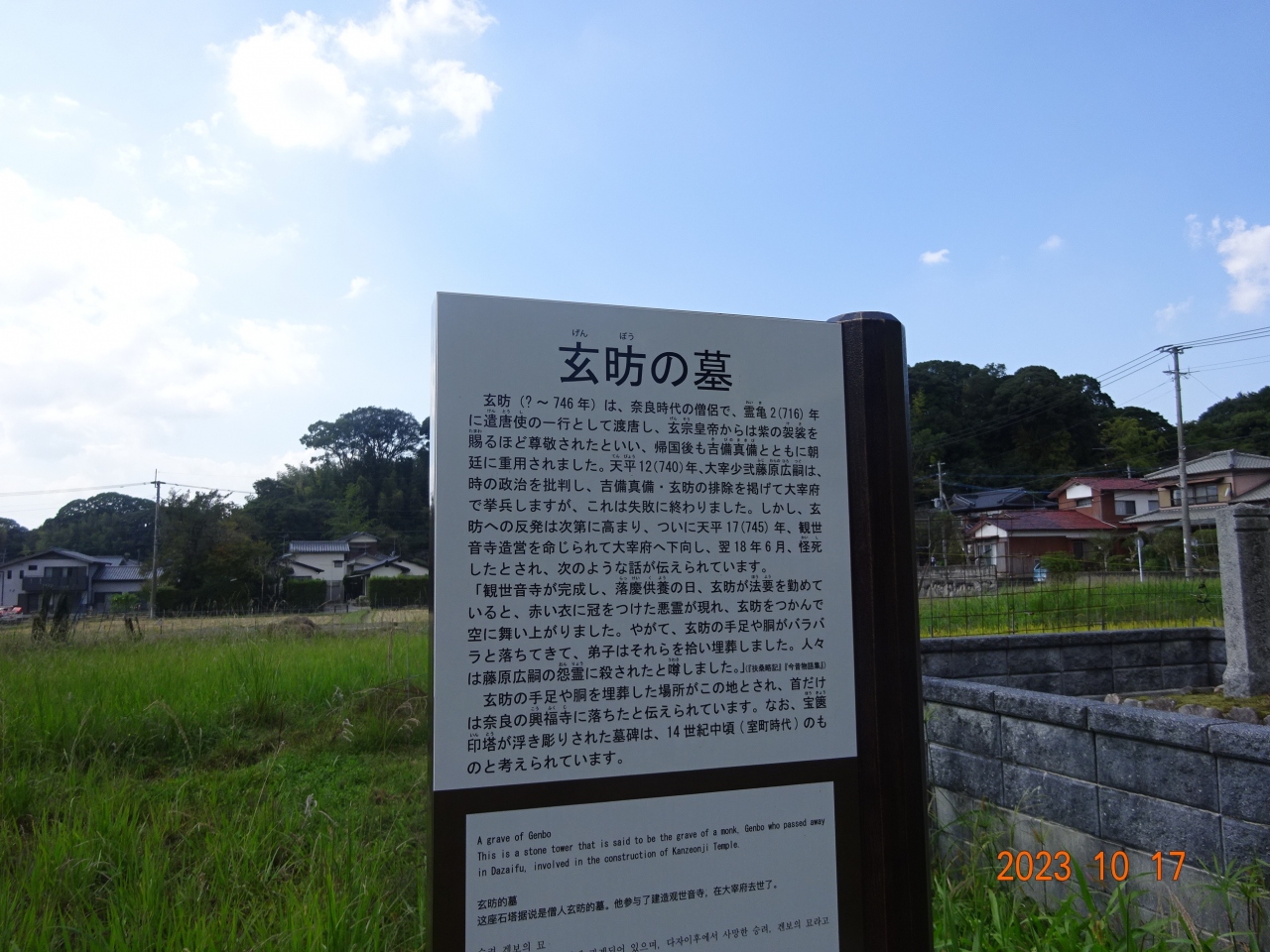 この周辺を散策している途中に、「玄の墓」という表示があったので、「玄の墓」って何だろう、「玄」って誰だろう、と思いながら行ってみました。