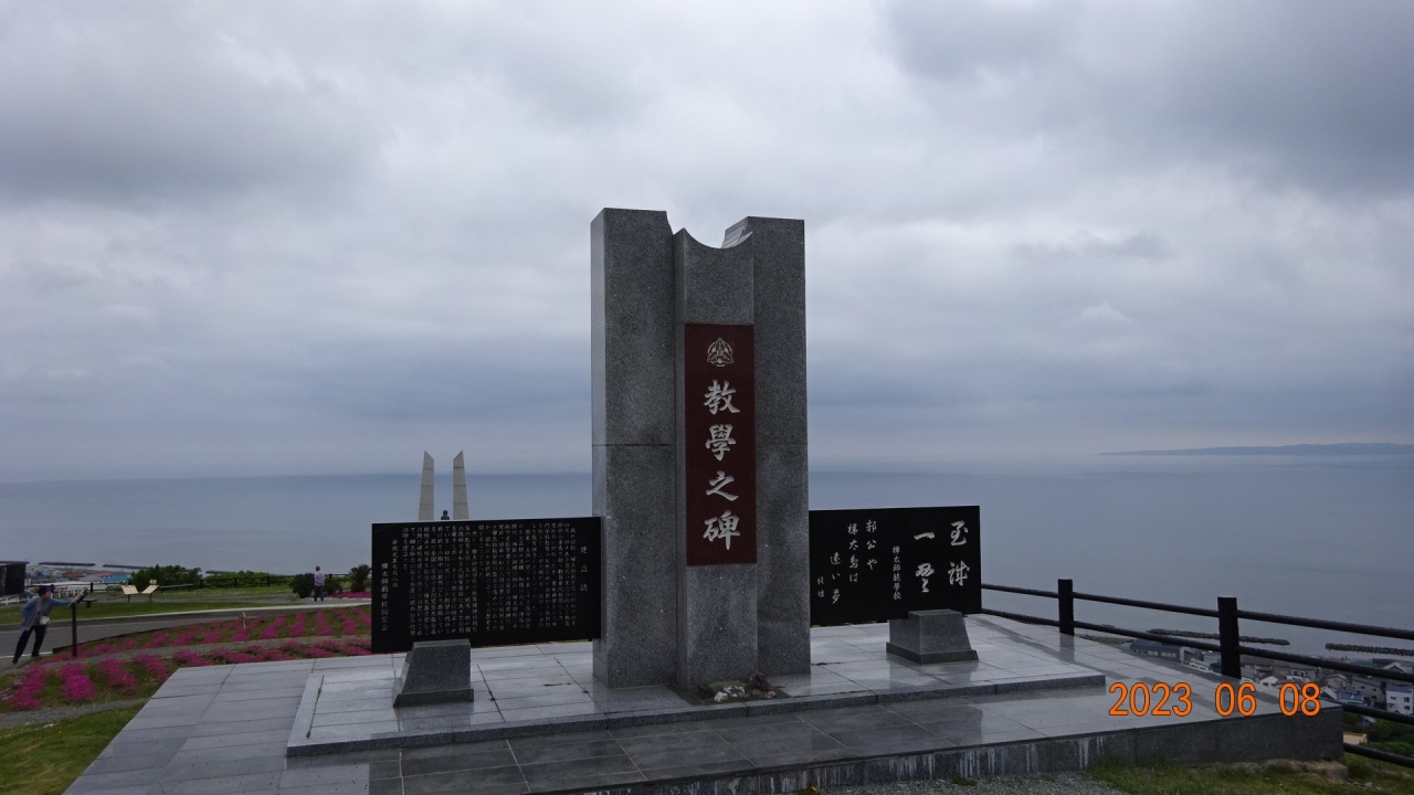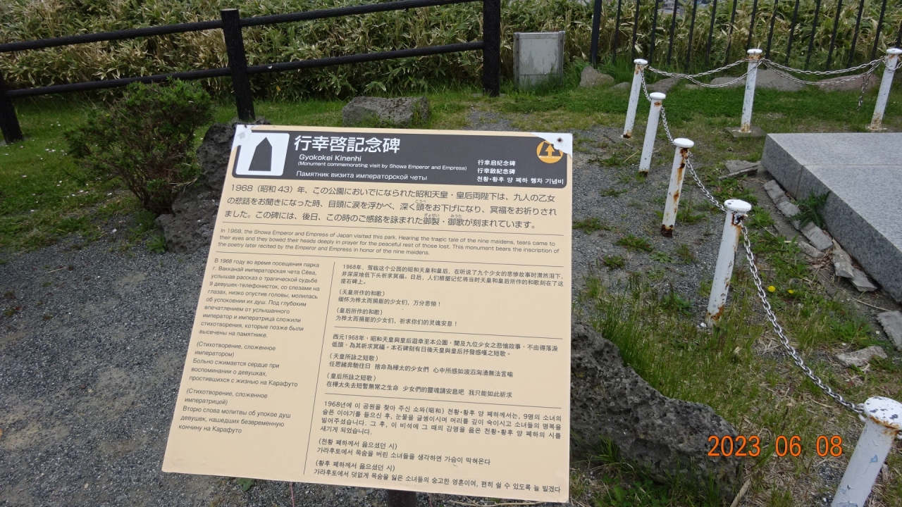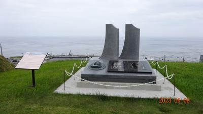 記念碑の向こうには海が見えます。この日の天候は曇天だったのですが、もしかしたら樺太が見えるのかもしれません。 昭和43年の開道百年記念式典に、天皇・皇后両陛下が出席されたそうです。- 旅行時期