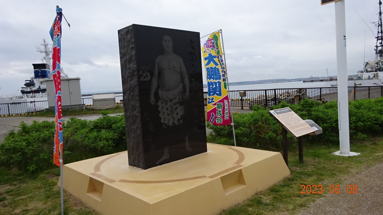 大横綱「大鵬関」が旧樺太から引き上げる際に稚内に上陸したことを記念し、有志の方が記念碑を建立したそうです。