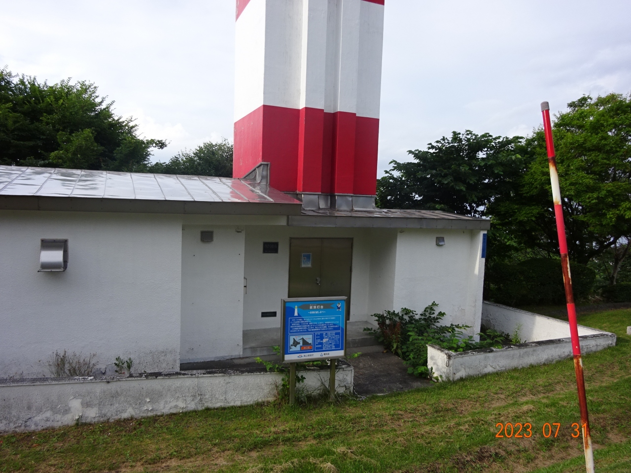 流氷展望台から、ホテルに戻るために、北の方向に降りていく途中に、この赤と白のカラフルな灯台がありました。