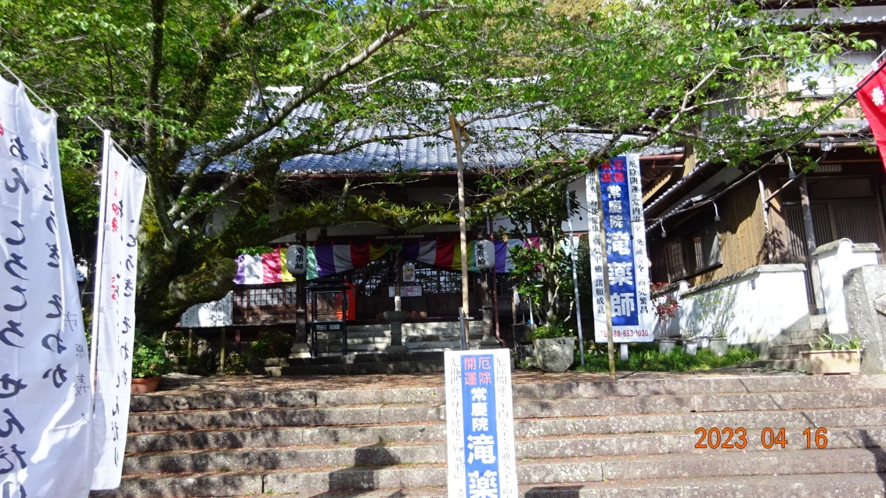 「滝のやきもち」のお店がありました。朝、早い時間だったので、お店は閉まっていましたが。石の階段を登ると八坂神社がありました。朝早い時間だったのですが、大きな蜂がぶんぶん近づいてくるので、ちょっと怖かったです。- 旅行時期