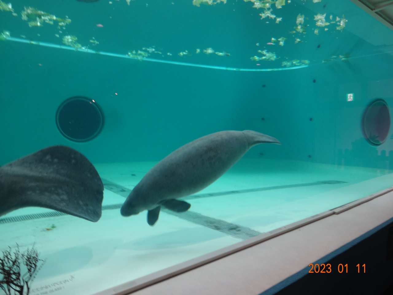 マナティの親子(だと思う)が水槽の中で泳いでいました。しぐさが、シンプルなのですが、妙にかわいらしくて、ウミガメ館よりも、こちらの方が家族連れには人気があったように思いました。- 旅行時期