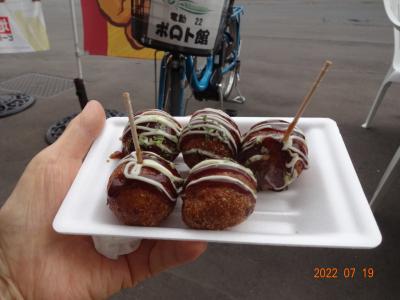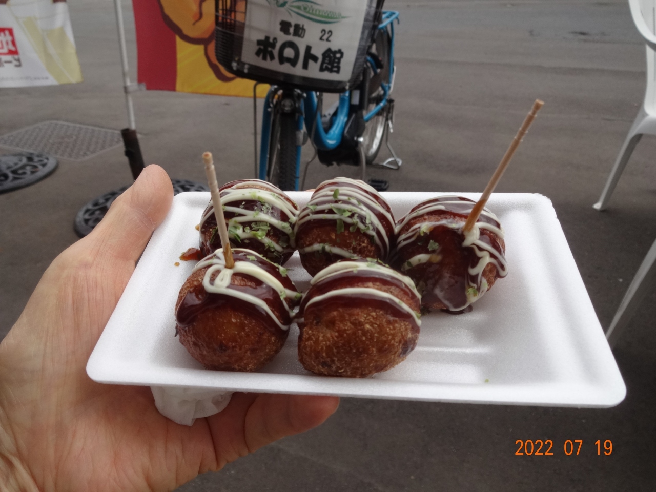 自転車を借りて、大沼湖の周囲を回る前に、ここでたこ焼きを注文して食べました。
