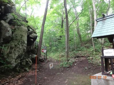 噴火を繰り返してきた駒ヶ岳の平穏や登山者の安全を祈念して建立された神社だそうです。境内には、大きな岩がありました。