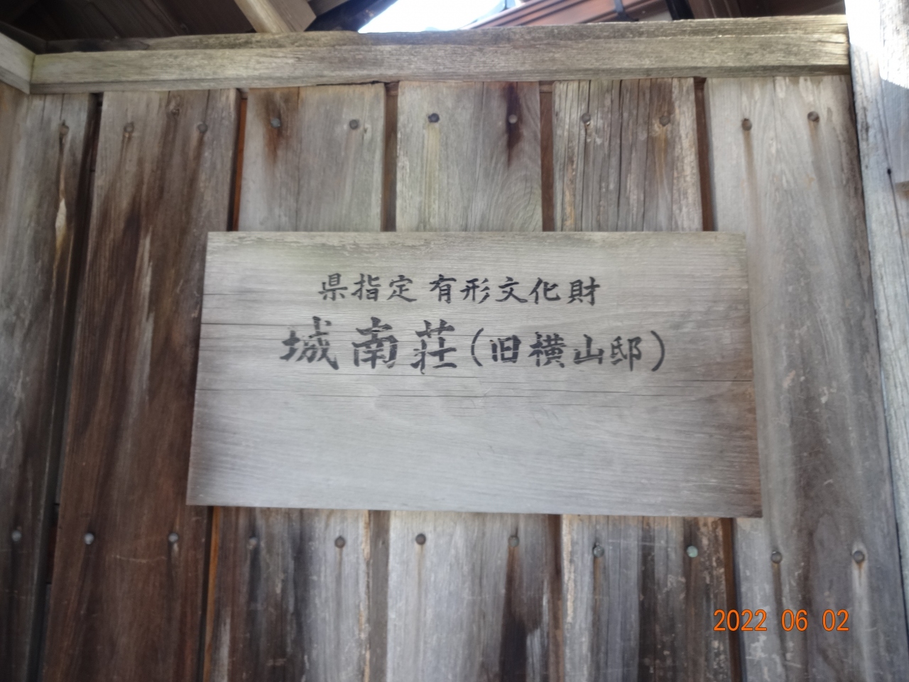 門の前に城南荘に関する説明版がありました。現在残っているのはすべて私的な居住部分だという事で、一般公開はしていないようです。